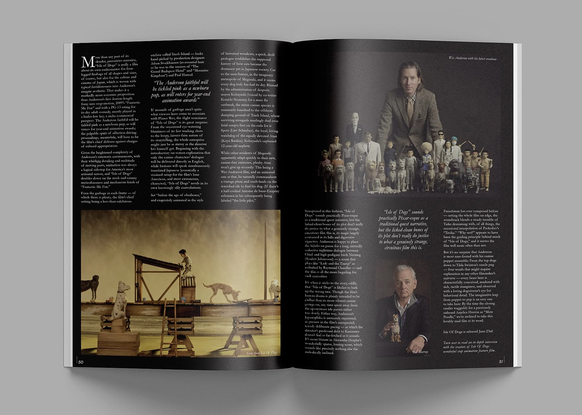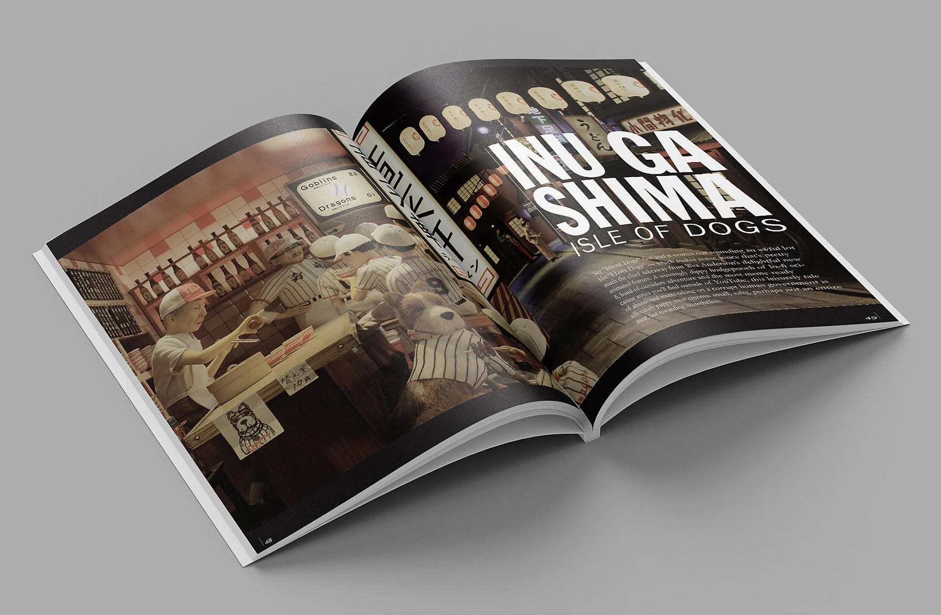 Editorial brief using a fictional animation movie magazine as source material. Main articles are on the movie (Isle of Dogs). Sections that were required to be designed were: front and back covers, content page, feature article and interview spread.